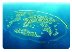 迪拜世界岛由300多个小岛按照世界地图的形状建成,是世界最大人造海岛。这些岛上将设有酒店以及各种休闲旅游设施,整个工程项目的规模堪称现代“世界第八大奇迹”。