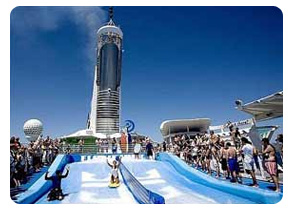 水上乐园位于“帆船”酒店和Jumeirah Beach酒店脚下,是全球最新最先进的水上主题公园,水上乐园左边是棕榈岛,右边是世界岛和新的商业湾,得天独厚的位置使得它成为一个与众不同的主题公园。