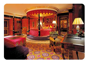 客房面积从170平方米到780平方米不等,最低房价也要900美元/天,最高的总统套房则要18000美元/天。总统套房在第25层,家具是镀金的,设有一个电影院,两间卧室,两间起居室,一个餐厅,出入有专用电梯。