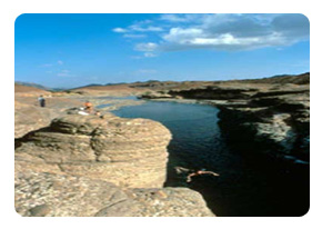 哈达岩池依偎在哈达山的峭壁上,岩池形成一条长条的走廊,包括瀑布和绿宝石样的池水。这里有葱郁的峡谷和干涸的河床以及哈达古代的堡垒村落。