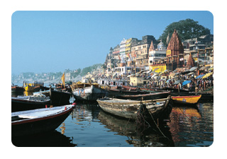 向东再走一段就是印度最古老的城市瓦拉纳西(Varanasi)。这里又是印度教徒们的主要参拜地,印度教徒们深信若在瓦拉纳西死去就能从轮回锁中解脱出来。诚实的印度教教徒们为了在瓦拉纳西度过余生特意来到这里过着严格节制的生活。