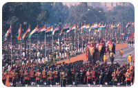 1950年1月26日为了纪念共和国宪法颁布而制定的庆祝日,在印度各州首府都会举行,但特别是在首都新德里举行的阅兵仪式极其壮观。无数看热闹的人群和装扮华丽的军队、大象、骆驼队伍,还有穿着各民族服装的人们以印度门地区为中心形成非常壮观的场景。来自各州的家长队伍在印度门举行仪式后开始行进,通过康诺特广场路经Ajmer