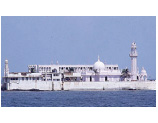 距离海边500米远,通过堤上的路与本土连接在一起的小岛上有一个伊斯兰城Haji Ali纪念物,这一罕见的祠堂是孟买众多有趣的圣所之一。