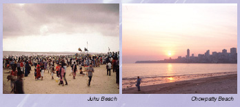 沿着滨海大道伸展的小海边焦伯旬(Chowpatty)以夕阳西下散步的理想场所而驰名,幷且这里还有很多销售各种零食(Snack)的商店。距市内30km远的Juhu