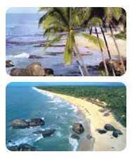 果阿的海滩非常美丽,海岸线仿佛就像一根长长的线,由椰子树和柔软美丽的沙滩(一般是银色、时而是黄金色)组成。不论是平和偏僻的地方,还是广阔充满活力的地方,海滩不属于私有地,