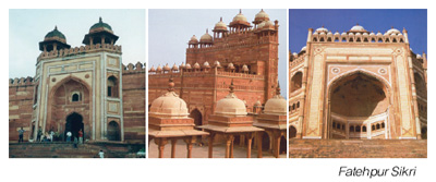 Masjid),入口处有称作胜利之门的布兰德达瓦査(Buland Darwaza)大门。走过大门进入建筑物里边就是曾给皇帝占指儿子的圣者沙基·沙林·契斯提(Sheikh