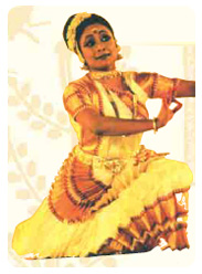 舞者穿上的漂亮的刺绣长裙和半透明面纱腰部开始飘荡,戴上长孔雀羽毛王冠的克里希纳的服装为舞蹈增添华丽,根据渐渐加快的速度晃动身体不停旋转的舞姿极其美丽。