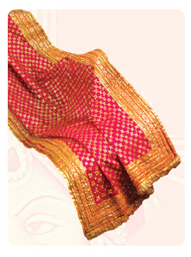 围在腰部的部)、包头巾、方形披巾、裙子(ghagra..宽而长的裙子)或lehenga等多种男女服装类至被子、床单、坐垫、桌布、窗帘,丝绸的使用率非常高,并且沿边刺类的衣料经常使用于服装、坐垫及围巾的设计上.。