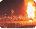 庆祝活动的最后一天,人们将装满爆竹的巨型木偶-拉巴那点燃,黑暗的夜空立即变成火花的海洋,景象十分壮观。