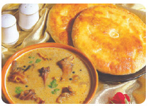 烤烤瑙(coconut)萨纳(sannas)着肉汁吃。至少果阿人认为萨娜(sanna)与Sorpotel的结合是极具想象力的杰作。