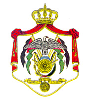 国徽为斗篷式。斗篷顶端有一王冠,象征约旦是一个君主立宪国。斗篷内一只展翅的萨拉丁雄鹰站在一圆球上,象征伊斯兰教义传遍全球。鹰两侧为约旦国旗,国旗下有阿拉伯宝刀和弓箭,象征伊斯兰的胜利者。代表地球的圆球下面,是麦穗和棕榈枝,象征农业。底部的绶带上用阿拉伯文写着“约旦哈希姆王国国王祈祷真主赐给他幸福和帮助”。绶带下面是一枚复活勋章。
