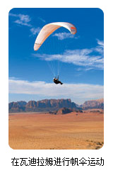 寻求不同寻常刺激的游客可以乘坐直升机或者热气球升到瓦迪拉姆的山峰顶部或佩特拉周围,然后可以再降落到地上。在约旦,滑翔机和私人飞机也可以租赁,但是只在安曼的马卡机场。
