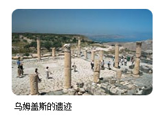 盖达拉(现称乌姆盖斯)是古老的底卡波利十城联盟城市,在此可以俯瞰加利利海全景,同时这里也是圣经故事"低头猪猡"发生的地点。耶稣偶遇一个住在城门附近的坟墓里的疯子,便取出他脑中的恶灵给了一群猪,然后这群猪冲下山坡全部溺死在加利利海。